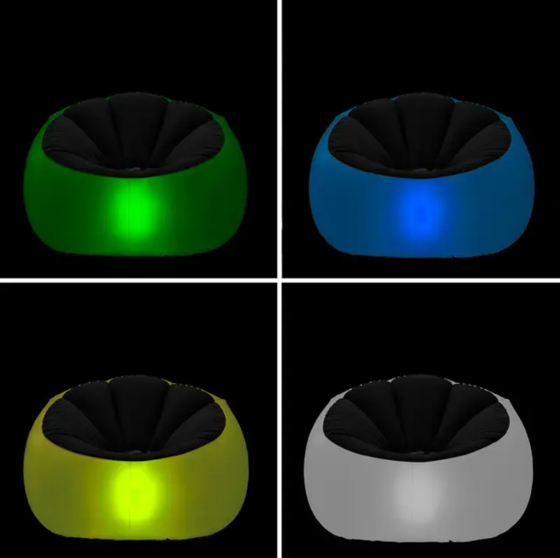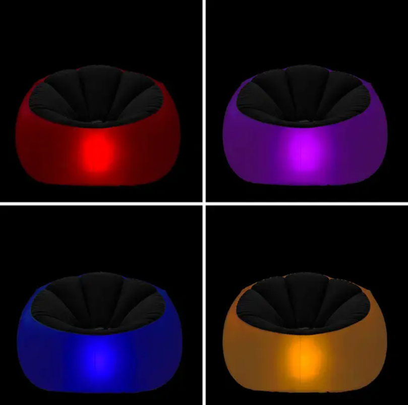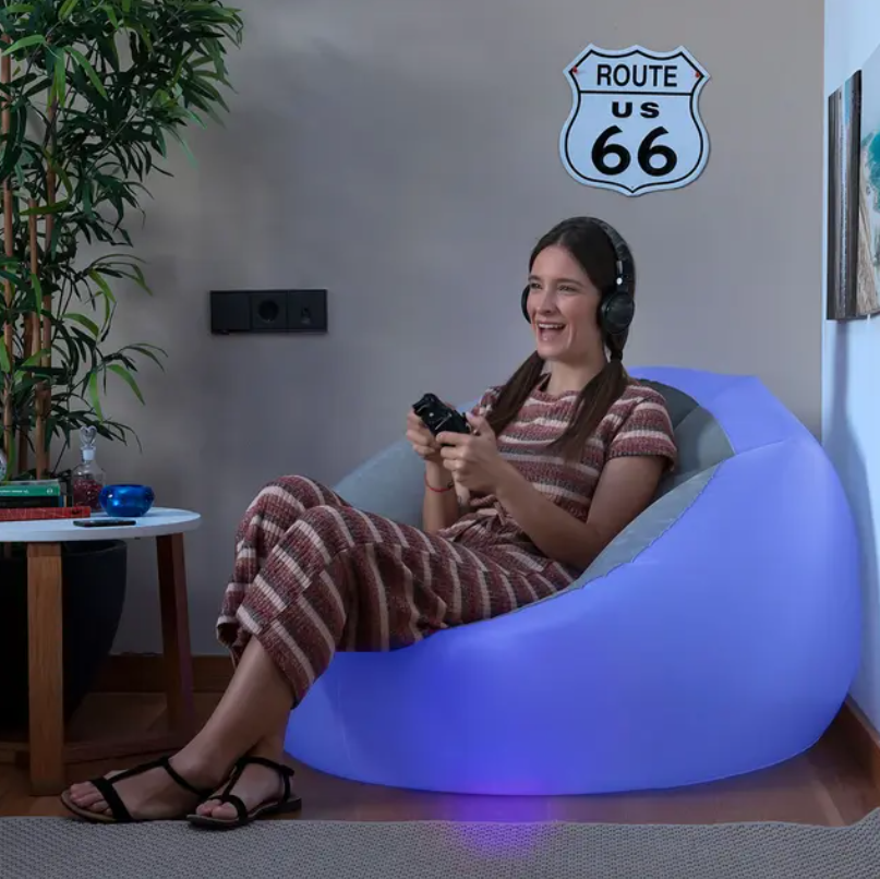 Комфортно надуваемо кресло с вградена многоцветна LED светлина и дистанционно управление. Създава релаксираща и уютна атмосфера у дома – идеално за почивка, музика или спокойни вечери.
